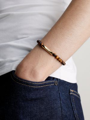 SEK 1,090.00(inc. VAT)Beaded bracelet with tigers eye stone and gold plated stainless steel beads. Finished with a gold plated steel logo tab.