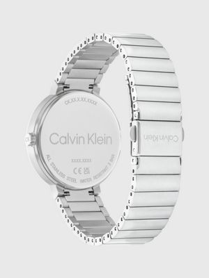 • Calvin Klein logo styling at the dial, clasp and case