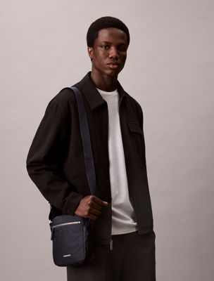 • Calvin Klein embossed metal logo bar on the front
